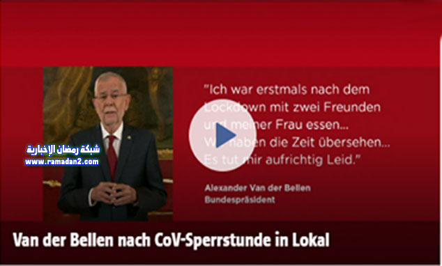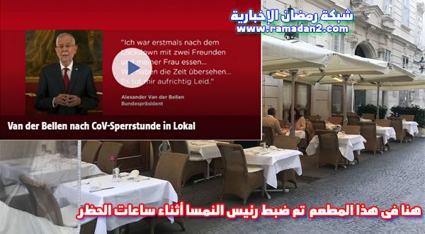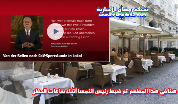 ضبطت شرطة العاصمة النمساوية فيينا رئيس البلاد ألكسندر فان دير بيلين، وزوجته دوريس شميداور، داخل مطعم بالحى الأول – فيينا بعد بدء وقت الحظر المفروض في إطار تدابير مكافحة كورونا.