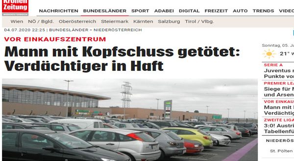 قالت شرطة مقاطعة النمسا السفلى “NÖ” اليوم السبت مساءّ ، أن مسلحاً أطلق النار أمام مركز التسوق G3 بمدينة Gerasdorf التابعة لمقاطعة النمسا السفلى ، على شخص طالب لجوء يعتقد أنه من الشيشان ، أصيب الرجل في رأسه وبعدها لاذ القاتل بالفرار، وقد تم القبض على الجانى في مدينة لينز بعد بضع ساعات ، ومازال التحقيق جارى في مكتب الدولة لحماية الدستور ومكافحة الإرهاب (LVT).