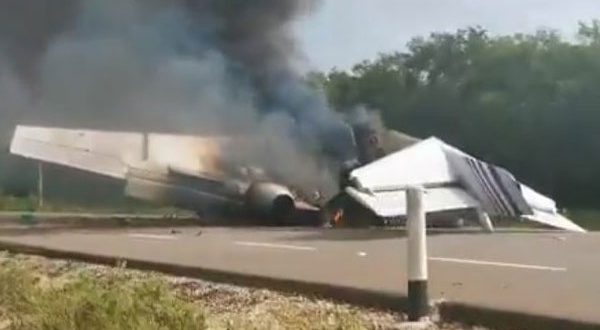نشر قائد شرطة لإحدى الولايات المكسيكية مقطع فيديو الأحد 5 يوليو 2020، يظهر لحظات احتراق طائرة مدنية في طريق مخصص للطائرات.