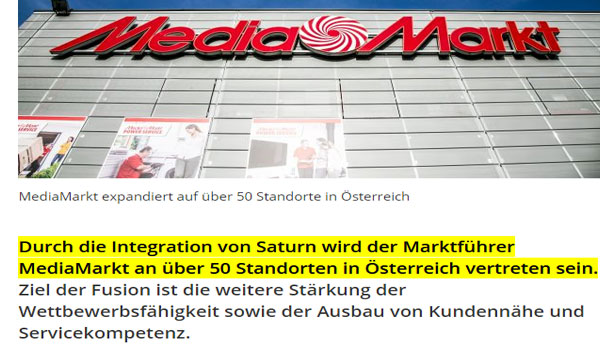 قرر أكبر متجرين ألكترونيات في النمسا بحث خطة اندماج لتشكيل أكبر متجر للأكترونيات في النمسا ووسط أوربا ، يمكن أيضاّ أن يكون له قوة فاعلة على المستوى الأوروبى ، والخطة كما يبدو تلقى دعما من الحكومة النمساوية