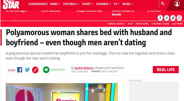 وقالت في سياق دفاعها عن هذه العلاقة الغريبة: “إنه مفهوم غريب حتى بالنسبة لي، لكنه محرر تمامًا. لقد نشأت في أسرة تقليدية ونشأت على اعتقاد أنه من المفترض أن تبقى مع شخص واحد لبقية حياتك”.