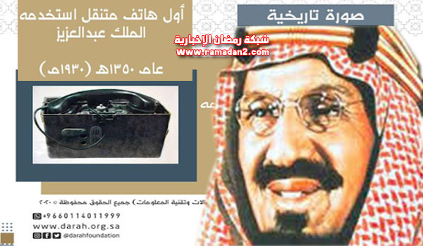 انتشرت صورة تاريخية نادرة عرضتها دارة الملك عبدالعزيز، لكاميرا مع فلاش، استخدمها الملك عبدالعزيز تعود إلى 1930م وأظهرت دارة الملك عبدالعزيز عبر حسابها تويتر صورة لأول هاتف متنقل استخدمه الملك عبدالعزيز عام 1350هـ - 1930م.