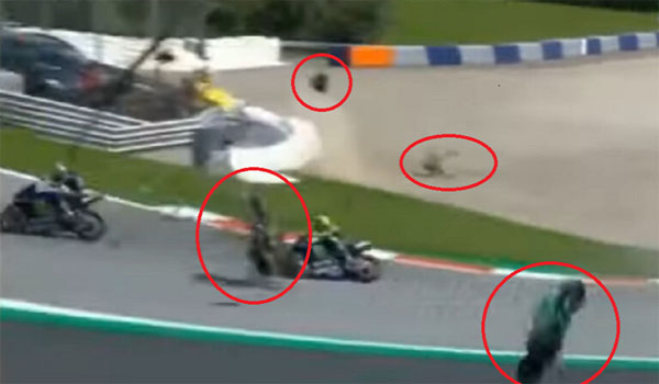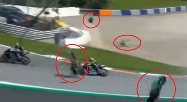 بالفيديو اصطدام مروع تطاير دراجتين في الهواء فى سباق جائزة النمسا الكبرى ونجاة الأسطورة روسي بأعجوبة