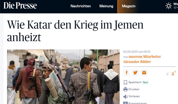 صحيفة الـ Die Presse النمساوية : عميل يؤكد “قطر تمول الحوثي” في اليمن