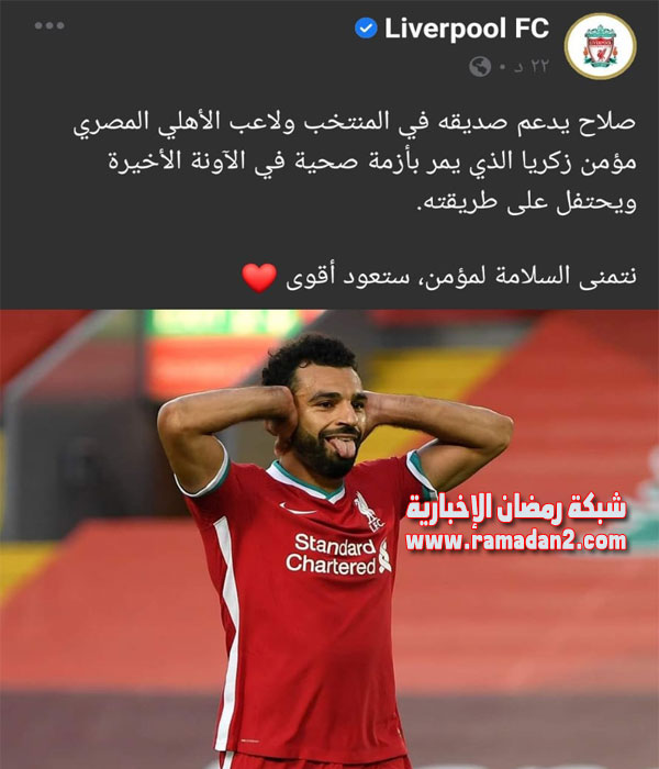 وأراد صلاح إهداء هدفه إلى زكريا والإعراب عن دعمه، بعد المرض الذي يستعد للسفر بسببه إلى الولايات المتحدة الأمريكية لمتابعة برنامجه العلاجي، حيث من المتوقع أن يبقى هناك عدة أشهر.