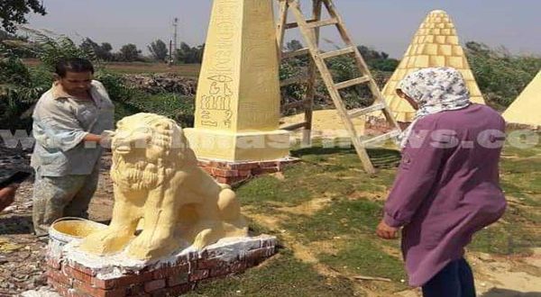 بالصور – إزالة أهرامات المنوفية بسبب إثارتها للسخرية على مواقع التواصل الإجتماعى
