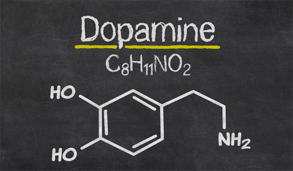 ويرتبط الدوبامين بالأساس بالمواد الإدمانية كالميثامفيتامين والكوكايين، حيث تزيد هذه المواد الإدمانية عند تعاطيها من إنتاج الدوبامين.
