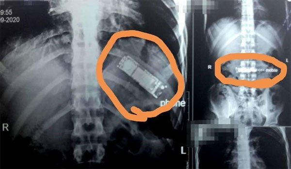 كما أظهرت الفحوصات أن هذا الجسم الغريب هو هاتف جوال فيما قال المريض إنه ابتلعه خلال لحظة مزاح بينه وبين زملائه، لافتاً إلى أنه لم يبلغ أسرته بالواقعة ظناً منه أنه وبمجرد أن يقوم بالقيء في أي وقت سيتمكن من إخراج الهاتف من معدته.