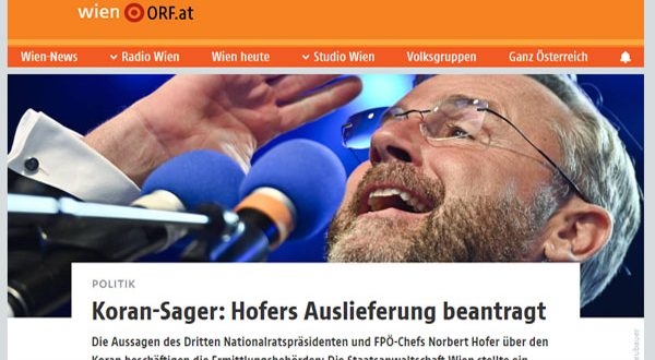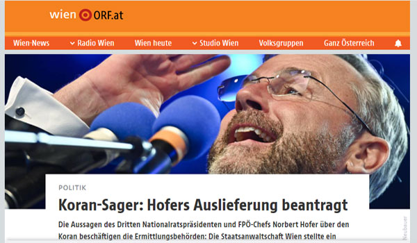 طالب النائب العام النمساوى اليوم الأثنين الموافق 28 من سبتمبر 2020 ،مجلس النواب الإتحادى النمساوى ، رفع الحصانة البرلمانية عن عضو مجلس النواب وزعيم حزب الحرية اليمينى المتشدد السيد نوربرت هوفر، للتحقيق معه ، بسبب تصريحاته المسيئة للقرأن الكريم أثناء محمع أنتخابى، فى سوق «فيكتور أدلر ماركت» بالحى العاشر في فيينا ، في شهر يونيو الماضى