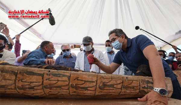 وقال الوزير المصري إنه جرى الكشف عن ٣ آبار بها ١٣ تابوتا، ثم تم الكشف عن ١٤ تابوتا آخرين بها، ليصل إجمالي عدد التوابيت المكتشفة حتى اليوم ٥٩ تابوتا، لافتاً إلى أن الكشف لم ينته بعد؛ “فقد وجدنا طبقات من التوابيت والتي سيتم الإعلان عنها لاحقا”.
