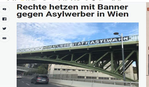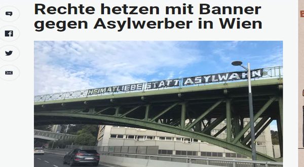 بسبب دخول اللأجئين في المنافسة بين الأحزاب اليمينية المتشددة في فيينا ، والتي تقام يوم الأحد القادم 11 من أكتوبر ، قامت أحزاب يمينية بوضع لافتة عنصرية أعلى جسر شهير فى فيينا وهو ما أثار جدلا اجتماعيا واسعا ومخاوف من انتشار العنصرية وخطاب الكراهية .