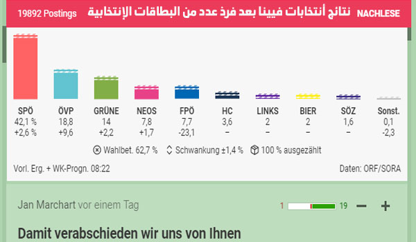 فهل الأحزاب اليمينية تتعلم الدرس من الدعاية الأنتخابية التي تقوم على الكراهية والعنصرية لا مكان لها في النمسا ، حيث أنه لايعقل أن تقوم دعاية انتخابية بنيت فقط على التمييز العنصري وكراهية الأخر وترك كل مشاكل النمسا الأقتصادية والمالية والمعيشية في زمن كورونا