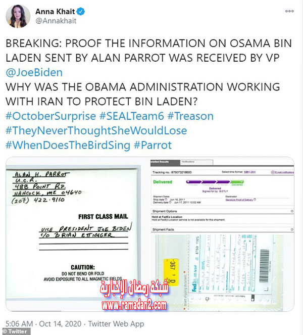 ثانيًا: الإعلان الصادر من قبل الإدارة الأمريكية بمقتل أسامة بن لادن، كان يوم 2 مايو 2011، بينما المكالمة المسجلة التي تتحدث عن إقامته في إيران، وتم الكشف عنها من رسائل بريد هيلاري كلينتون، كانت يوم 2 يونيو 2011 “أي بعد إعلان قتله بشهر