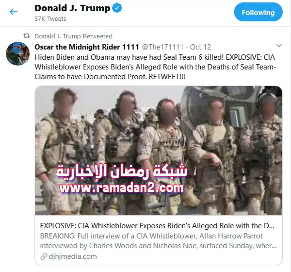 وتعود التغريدة التي أعاد الرئيس الأمريكي نشرها، لحساب مرتبط بـ “QAnon”، وهو تشكيل غير معروف الهوية مؤيد لترامب، يروج لنظريات المؤامرة عبر مواقع التواصل الاجتماعي.