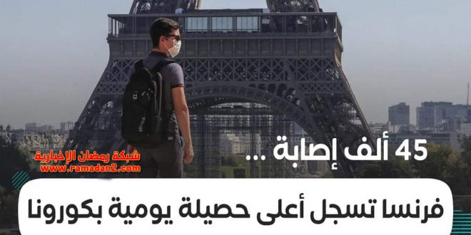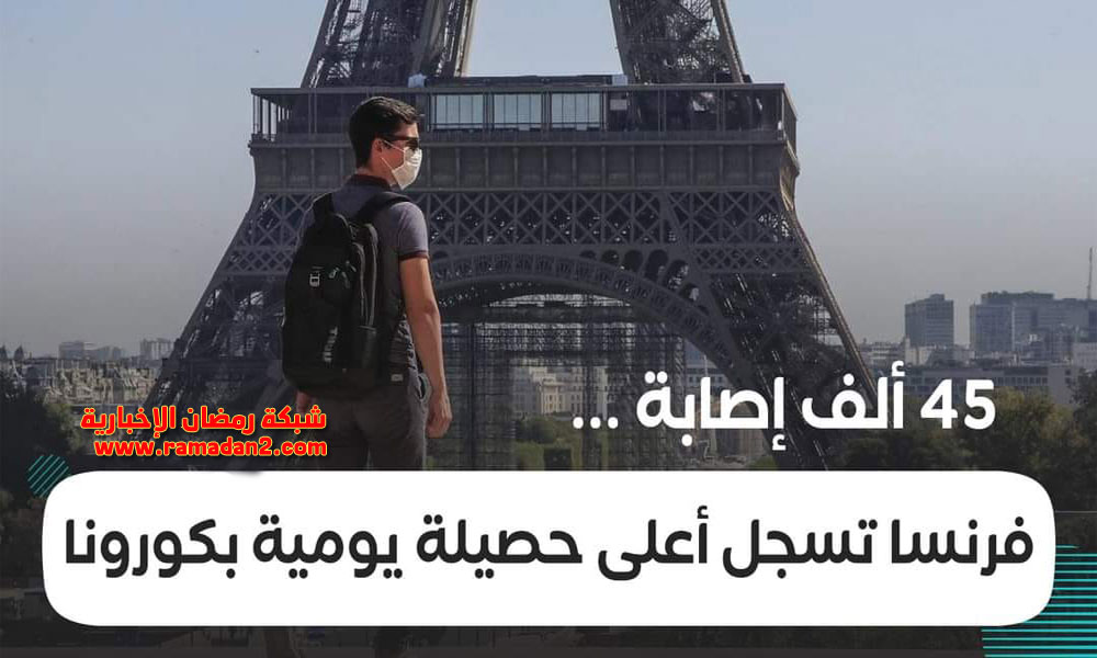 سجلت فرنسا، اليوم الأحد، رقمًا قياسيًا جديدًا في عدد الإصابات بفيروس كورونا المستجد (المسبّب لمرض كوفيد-19) بواقع 45 ألفًا و746 حالة.