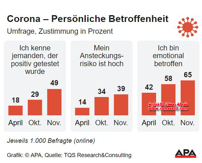 كشف استطلاع جديد للرأي اجرى حديثاّ لمؤسسة (TQS Research & Consulting) المتحصصة في أبحاث الأستطلاع ، أن حوالي نصف سكان النمسا عندهم أستعداد لأخذ لقاح  فايروس كورونا المستجد كوفيد-19 الذى أعلن عنه مؤخراّ من شركة فايزر أو شركة مودرنا