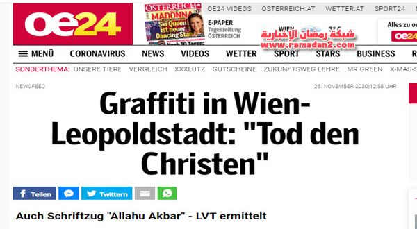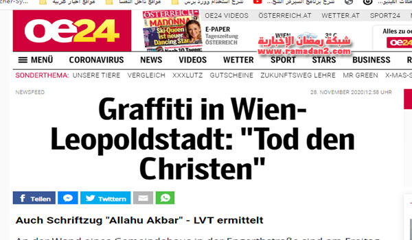 يكثف مكتب مكافحة الارهاب فى النمسا جهوده لضبط الجناة فى حادث كتابة عبارة “الله أكبر – الموت للمسيحيين” على جدران مبنى حكومي فى الحي الثاني بفيينا في شارع ” Engerthstraße”