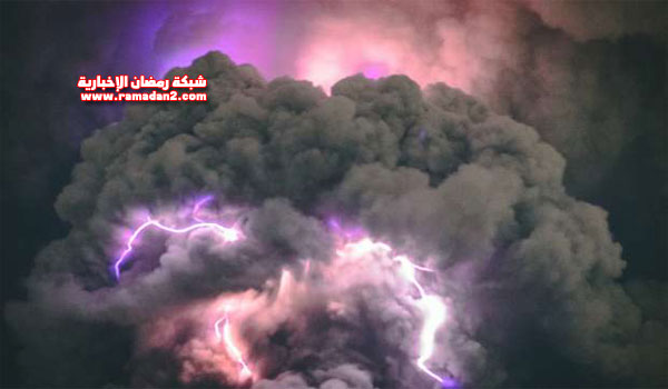 واقعة غريبة شهدتها الأراضي اليابانية، بالتقاء غريب حدث بين الحمم البركانية الخارجة من فوهة البركان مع عاصفة رعدية.