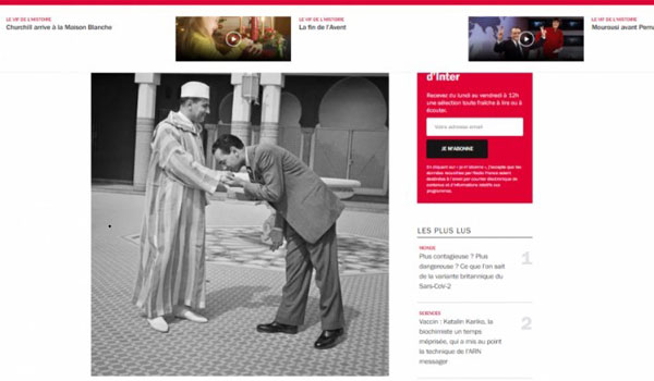 وعنونت الصورة، التي تظهر بومدين وهو يقبل يد ملك المغرب، بـ”الملك محمد الخامس يستقبل الرئيس هواري بومدين”.