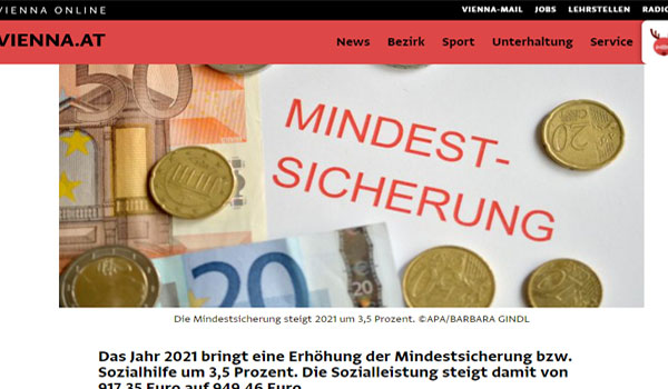 ذكرت بعض الصحف التمساوية الصادرة اليوم السبت الموافق 25 من ديسمبر أن هناك بعض التغييرات القانونية للمستفيدين من المساعدات الإجتماعية ” Mindestsicherung” التي تجريها حكومة مقاطعة فيينا تحت قيادة عمدة العاصمة المنتمى للخزب الأشتراكى الديمقراطى “SPÖ” بداية من شهر يناير القادم 2021 ، بزيادة قدرها 3,5 في المائة