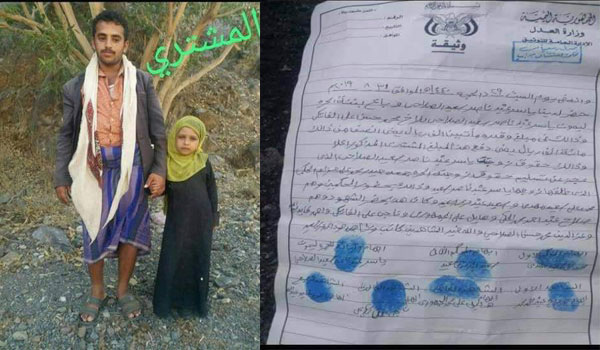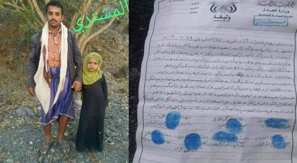 عملية بيع لطفلة موثقة بشكل قانوني من قبل جهات حكومية، عمليات بيع وشراء بشر «العبودية» مازالت موجودة في اليمن ولا يوجد أي تغيير لهذا الواقع القبيح.