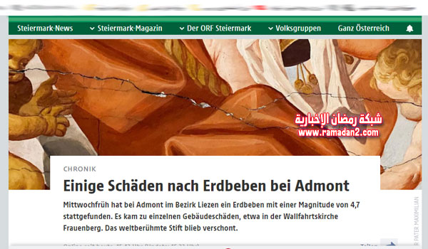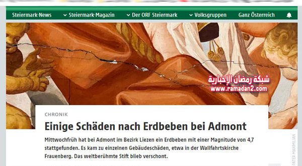 وأضافت الهيئة، في تقريرها: “تم في الساعة 8.30 من صباح اليوم بتوقيت وسط أوروبا، تسجيل وقوع زلزال قوي بقوة 4.5 على بعد 6 كيلومترات غربي أدمونت ولاية شتايرمارك في جنوب شرق البلاد”.