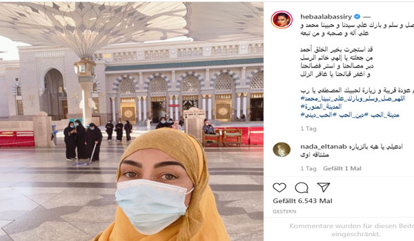 نشرت الفنانة هبة الأباصيري، صورة على الجمهور بالحجاب من أمام المسجد النبوي الشريف، بالمدينة المنورة في السعودية، وذلك على حسابها الخاص على موقع التواصل الاجتماعي.