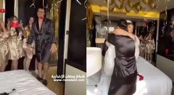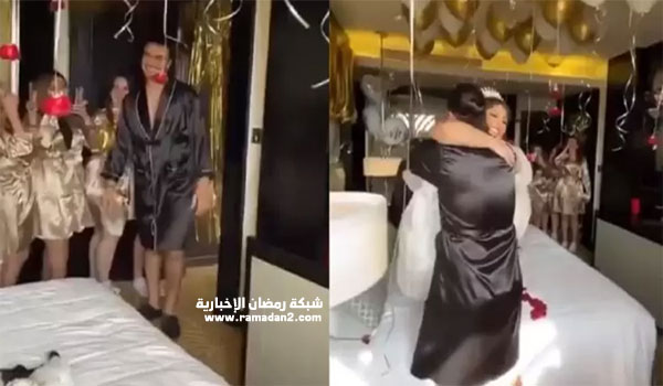 وأظهر المقطع دخول العريس وهو مرتدياً لروبه على عروسته التي كانت تنتظره على السرير، بحضور صديقاتها.
