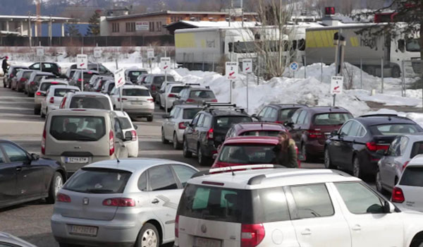 بالفيديو -أكتشاف أصابات بكورونا المتحول في ولاية تيرول النمساوية سائقون يصطفون لإجراء فحص كوفيد
