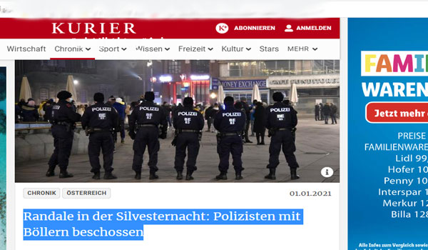 أبلغت شرطة فيينا بوقوع أعمال شغب في شوارع الحى العاشر بالعاصمة النمساوية فيينا في ليلة رأس السنة.