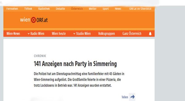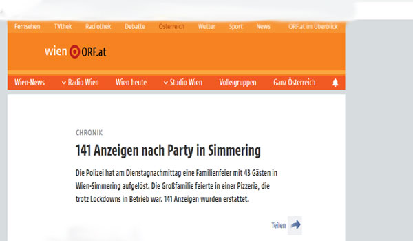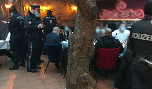 فحلال الليلة الماضية رصدت الشرطة في العاصمة فيينا بالحى الحادى عشر حفلا داخل أحد مطاعم البيزا ، عندما لاجظ أحد أفراد الدورية الشرطية دخول بعض الأشخاص إلى المطعم بدون مراعاة الإجراءات الواقية من كورونا مثل ارتداء الكمامة ، بعدها تم إخبار الوحدة الأمنية المتخصصة في اتخاذ الاجراءات الفورية للتصدى لمثل هذه الحالات
