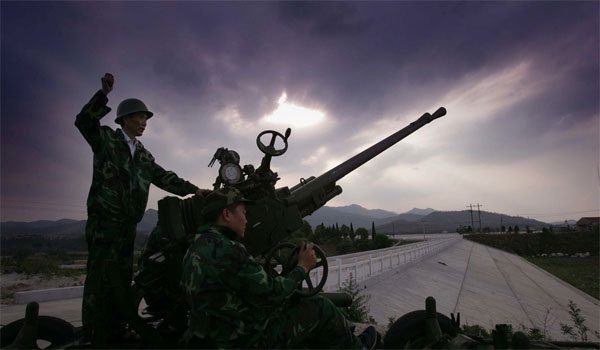 جندي صيني يطلق صواريخ لاستمطار السحب في محاولة لجلب المطر في هوانغبي