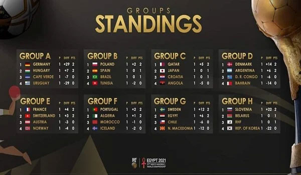تعرف على ترتيب مجموعات كأس العالم لكرة اليد قبل انطلاق الجولة الثانية