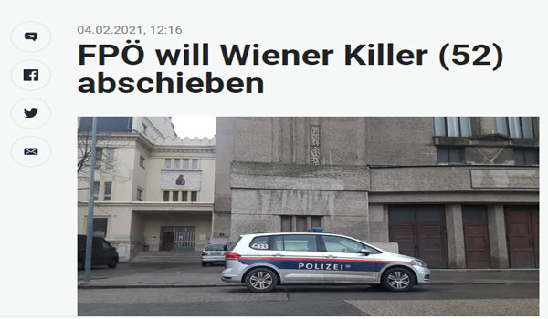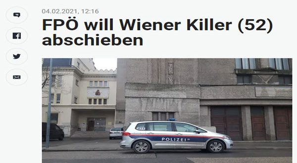 في مقابلة إذاعية اليوم الخميس 4 من فبراير ، طالب السيد نوربرت هوفر رئيس حزب الحرية اليمينى النمساوي، بترحيل اللأجئ السورى صاحب الـ 52 عاماّ الذى قتل زوجتة 47 عاماّ ، يوم أمس الأربعاء بالحى العاشر في فيينا ، بعدما أقدم الرجل على قتل زوجته طعنا بالسكين حتى الموت