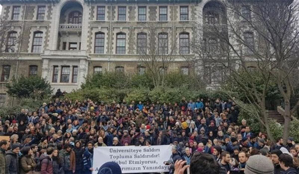 الاحتجاجات بجامعة بوغازيتشي بمدينة إسطنبول متواصلة. ورغم الاعتقالات والمداهمات وعنف الشرطة فإن الطلبة يصرون على مطالبهم وأبرزها استقالة رئيس الجامعة المثير للجدل، والذي عينه الرئيس رجب طيب أردوغان.