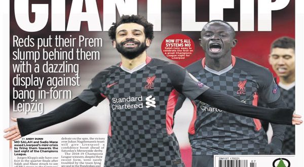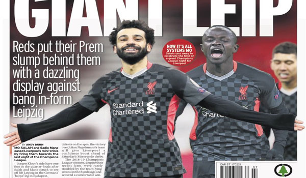 ليفربول انتصر على لايبزيج بهدفين دون مقابل وبأقدام صلاح وساديو ماني في ذهاب دور الـ16 لدوري أبطال أوروبا.