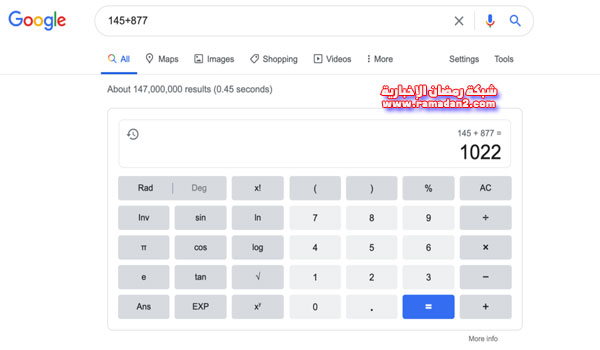 لا تريد البحث عن تطبيق آلة حاسبة؟ اكتب فقط مسألتك الحسابية أو المعادلة في مكان البحث لتحول جوجل إلى آلة حاسبة بسيطة. ويمكنك أيضاً كتابة “calculator” في مكان البحث وستجد آلة حاسبة تظهر أمامك.