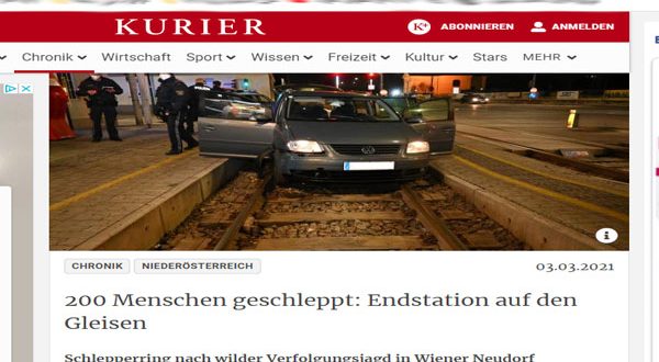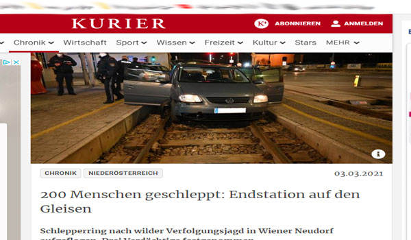 فقد لاحظت دورية من مركز شرطة Maria Enzersdorf سيارة المهربين حيث أن السائق تجاهل الضوء الأحمر عند تقاطع مع B17. وانتهت المطاردة بين الشرطة والمهربين في محطة Wiener Lokalbahnen في Wiener Neudorf. وبحسب بيان الوزارة ، لم يصب أحد.