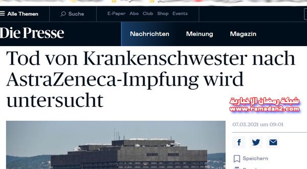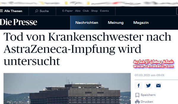 أضدرت الحكومة النمساوية اليوم الأحد بعدم أستخدام لقاح أسترازينيكا / أكسفورد ، بسبب وفاة ممرضة تبلغ من العمر 49 عامًا في ولاية النمسا السفلى بعد تطعيمها ضد فيروس كورونا. مع عدم أستخدام المخزونات المتبقية من نفس التطعيم