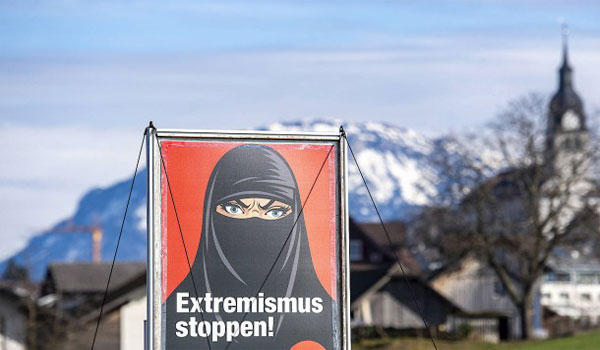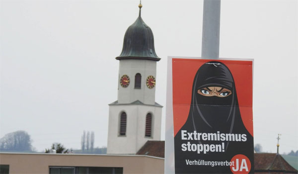 وفي أرجاء مدن سويسرية عدة، انتشرت ملصقات للحملة كُتب عليها: “اوقفوا الإسلام الراديكالي” و”أوقفوا التطرف”، يرافقها صورة لامرأة ترتدي نقابا أسود. في المقابل، تقول لافتات لحملة مضادة: “لا لقانون سخيف ضد البرقع، عديم الفائدة ومعادٍ للإسلام”.