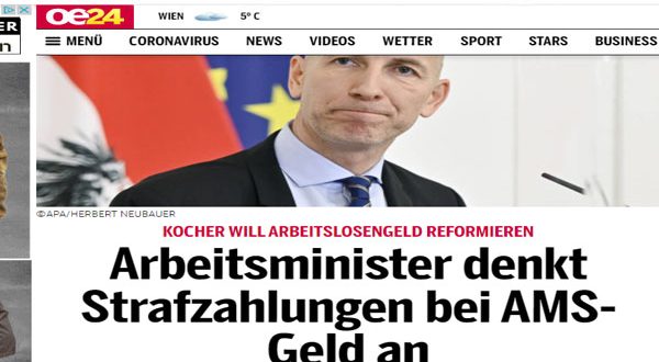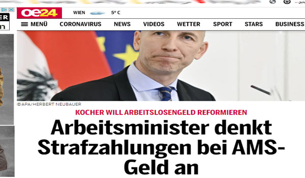 قال وزير العمل النمساوى السيد كوخر في مقابلة مع مجلة “بروفايل” الإخبارية نحن نفكر في هيكلة شروط وقواعد نقود إعانات البطالة ، لذلك علينا أن نأخذ في الاعتبار قواعد وشروط جديد للأشخاص الذين من حقهم الحصول على نقود البطالة. يجب أن يصبح الأسباب أكثر كفاءة ، مع تطبيق نظام عقوبات جديدة تكون أكثر فاعلية – ولكن أيضًا وجود مكافآت لمن يستحقها. سنقوم بتغيير بعض القواعد والشروط عندما نضع نظام وشروط حجيدة للحصول على نقود إعانات البطالة. والإصلاح يجب أن يحدث بعد جائحة كورونا