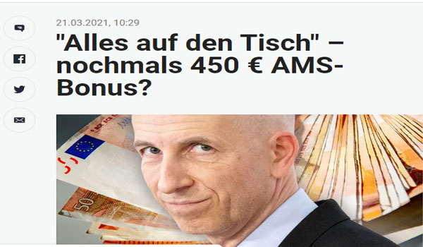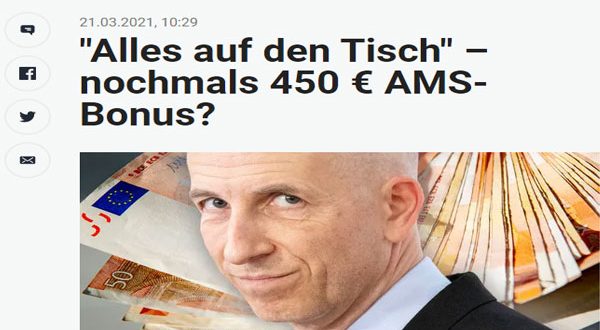 قال وزير العمل النمساوى اليوم الأحد في لقاء مع وكالة الأنباء النمساوية “APA” إن الحكومة تعتزم تقديم دعم مالي للعاطلين بقيمة 450 يوور، في إطار إجراءات تتخذها هذا العام لمواجهة الضرر الناجم عن جائحة كورونا