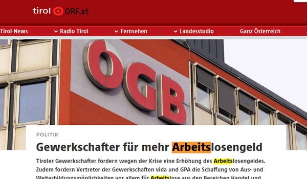 يجب أيضًا إشراك شركاء مكتب العمل الاجتماعيين مثل AK ، ÖGB ، WKÖ ، LK في هذه المناقشات. ، حيث أن نقابة العمال تطالب برفع نقود البطالة من 55 في المائة إلى 70 في المائة صاقية ، ولكن من ناحيتى هذا هذا غير وارد ، وغير موجود في خطط وزارة العمل لأنه يقلل من الحافز للبحث عن وظيفة.