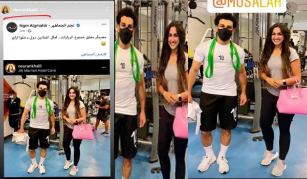 رغم التعليمات المشددة التي فرضها جهاز المنتخب بقيادة المدير الفني حسام البدري، بفرض حظر على اللاعبين بعدم الاختلاط بأي شخص بعد مسحة كورونا ودخولهم في معسكر مغلق، ، استعدادًا لمواجهتي كينيا وجزر القمر في الجولتين الخامسة والسادسة بتصفيات كأس الأمم الأفريقية، نشرت الفنانة نوران خليل، صورة رفقة النجم محمد صلاح لاعب نادي ليفربول والمنتخب المصري، أثناء تواجده داخل الجيم في فندق إقامة الفريق.