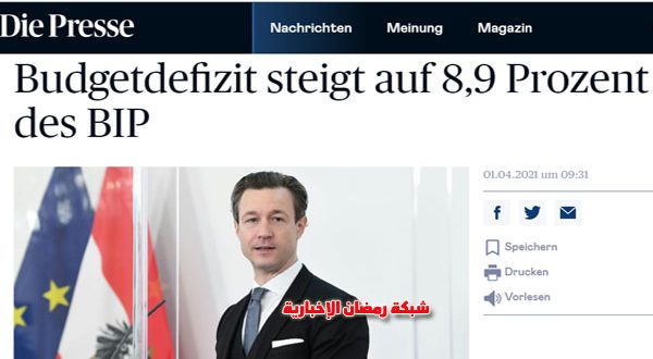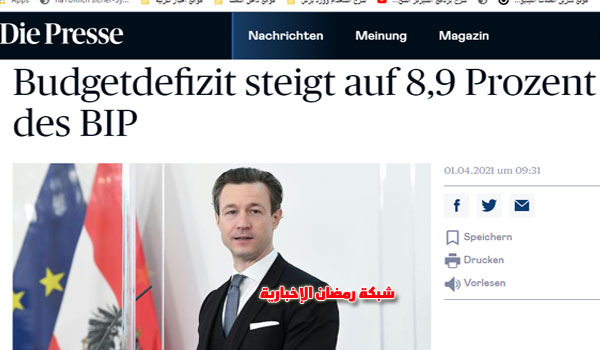 أعلن المدير العام للإحصاء النمساوي السيد توبياس توماس ، اليوم الخميس الموافق الأول من أبريل 2021 ، أثناء تقديم المالية العامة ، أن عجز ميزانية النمسا ازداد بشكل كبير خلال العام الماضي، 2020 إلى 8,9 في المائة بسبب وباء كورونا ، من الناتج المحلي الإجمالي 33.2 مليار ، وهذا يعتبر أكبر عجز منذ الحرب العالمية الثانية ، حيث أن وصل الفائض في ميزانية عام 2019 إلى 2.4 مليار يورو أو 0.6٪ من الناتج العام