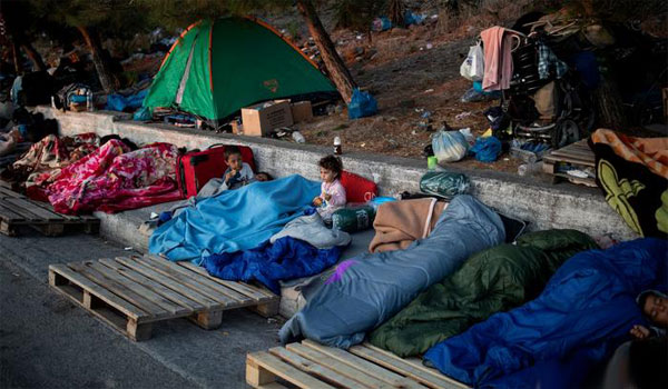 الأطفال ينامون في العراء بعدما تدمر مخيم موريا