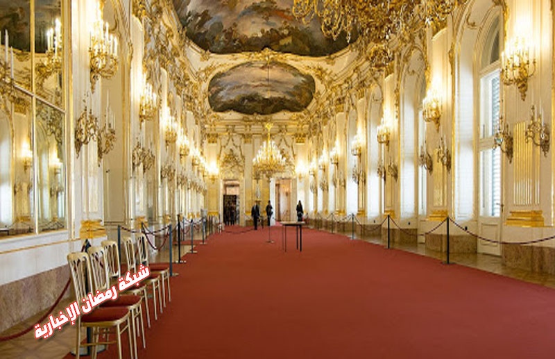 قاعات وغرف كثيرة في القصر، شهد كل مكان فيها حفلات فنية وليالي لا تنسى، كما كانت تلك الليلة الأشهر في تاريخ النمسا وفي قاعة الاستقبال المعروفة باسم الصالون الأزرق، حيث تحولت النمسا من دولة ملكية إلى جمهورية، عندما وقع آخر أباطرة النمسا على وثيقة تخليه عن العرش.