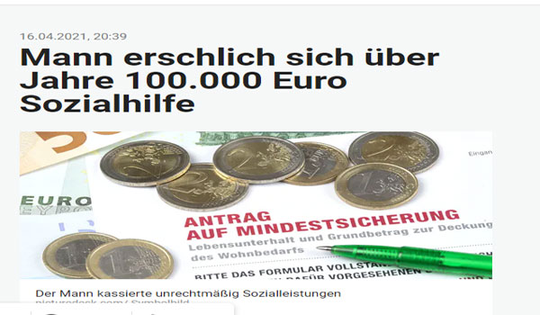داهمت الشرطة النمساوية منزل رجل شيشانى يبلغ من العمر 58 عامًا في مدينة Feldbach التي تقع في جنوب ولاية شتايرمارك بوسط النمسا ، بسبب اتهامات بحصوله “عن طريق الاحتيال” على مساعدات أجتماعية بلغت 100 ألف إيرو، وتعويضات مخصصة أخرى لمواجهة أزمة فيروس كورونا.