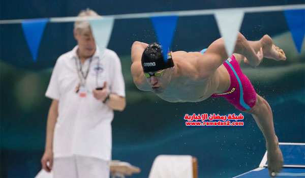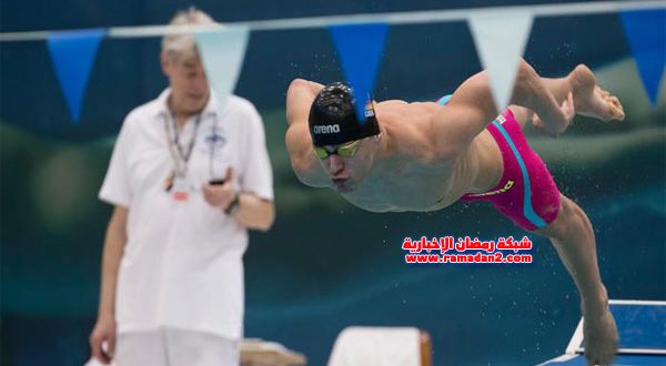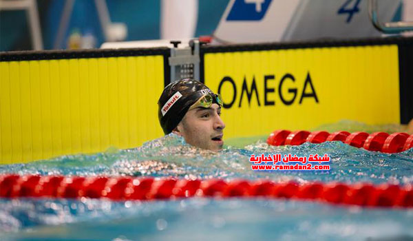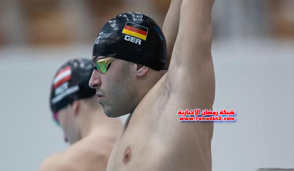 علاء ماسو.. اللاجئ السوري خلال مشاركته في مسابقة رياضة السباحة