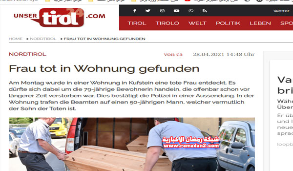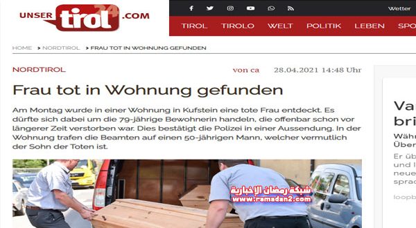 عثر رجال الشرطة في ولاية التيرول النمساوية التي تقع في أقصى غرب البلاد يوم الأثنين الماضى على جثة أمرأة تبلغ من العمر 79 غاماّ من عمرها داخل شقتها في مدينة كوفشتاين ، وتم نقل الجثة إلى المستشفى